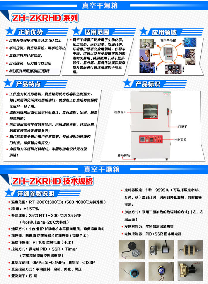 真空烘箱有很多優(yōu)點:在低壓下干燥時氧含量低,能防止被干燥物料氧化變質(zhì),可干燥易燃易爆的危險品;可在低溫下使物料中的水分汽化,易于干燥熱敏性物料;能回收被干燥物料中的珍貴和有用的成分;能防止被干燥物料中有毒有害物質(zhì)的排放,可成為環(huán)保類型的"綠色"干燥。