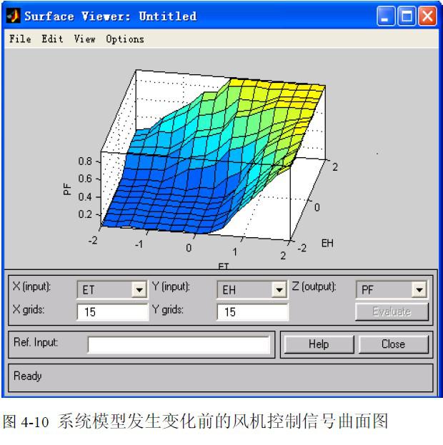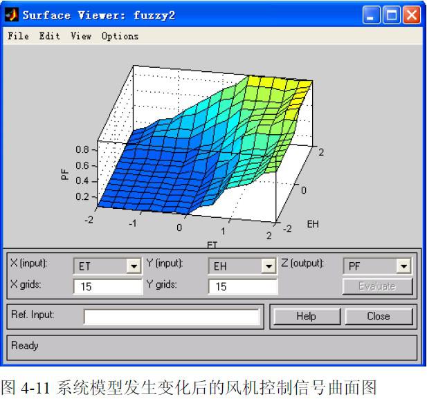 從仿真曲面圖中可以清楚的看到,當系統模型發生變化時,風機的控制策略也隨著發生變化,體現了系統的智能性和自適應性。
